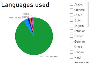 The pie chart below illustrates the languages used by users, with English being the dominant language, constituting 90.5% of the data. Other languages like Japanese, Tlingit, and Spanish are represented by a smaller fraction, indicating that the user base is primarily English-speaking.